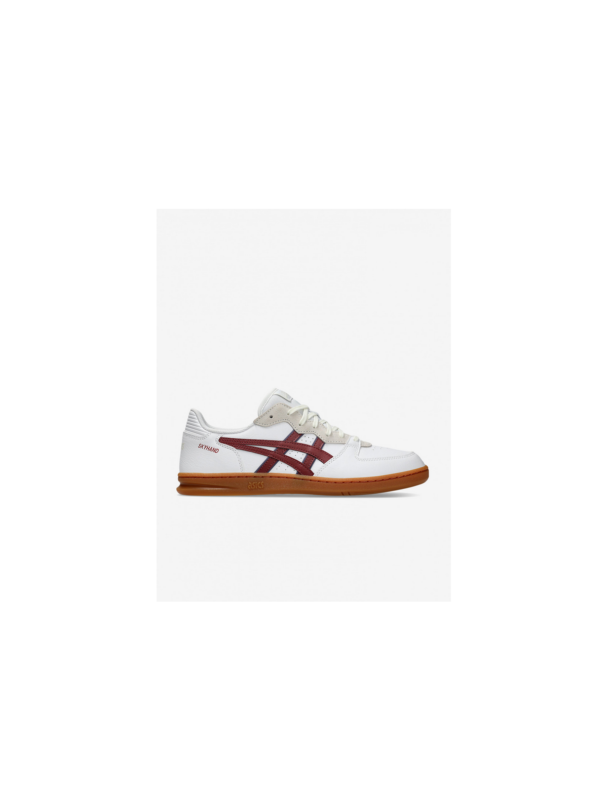 Zapatillas Asics Skyhand OG Blancas y Burdeos fabricadas con piel y materiales sintéticos y textiles con parte superior en una combinación de piel lisa y paneles de gamuza, amortiguación FLYTEFOAM PROPEL diseñada para absorber el impacto de forma cómoda, talón con refuerzo de EVA para mayor sujeción y suela de goma.