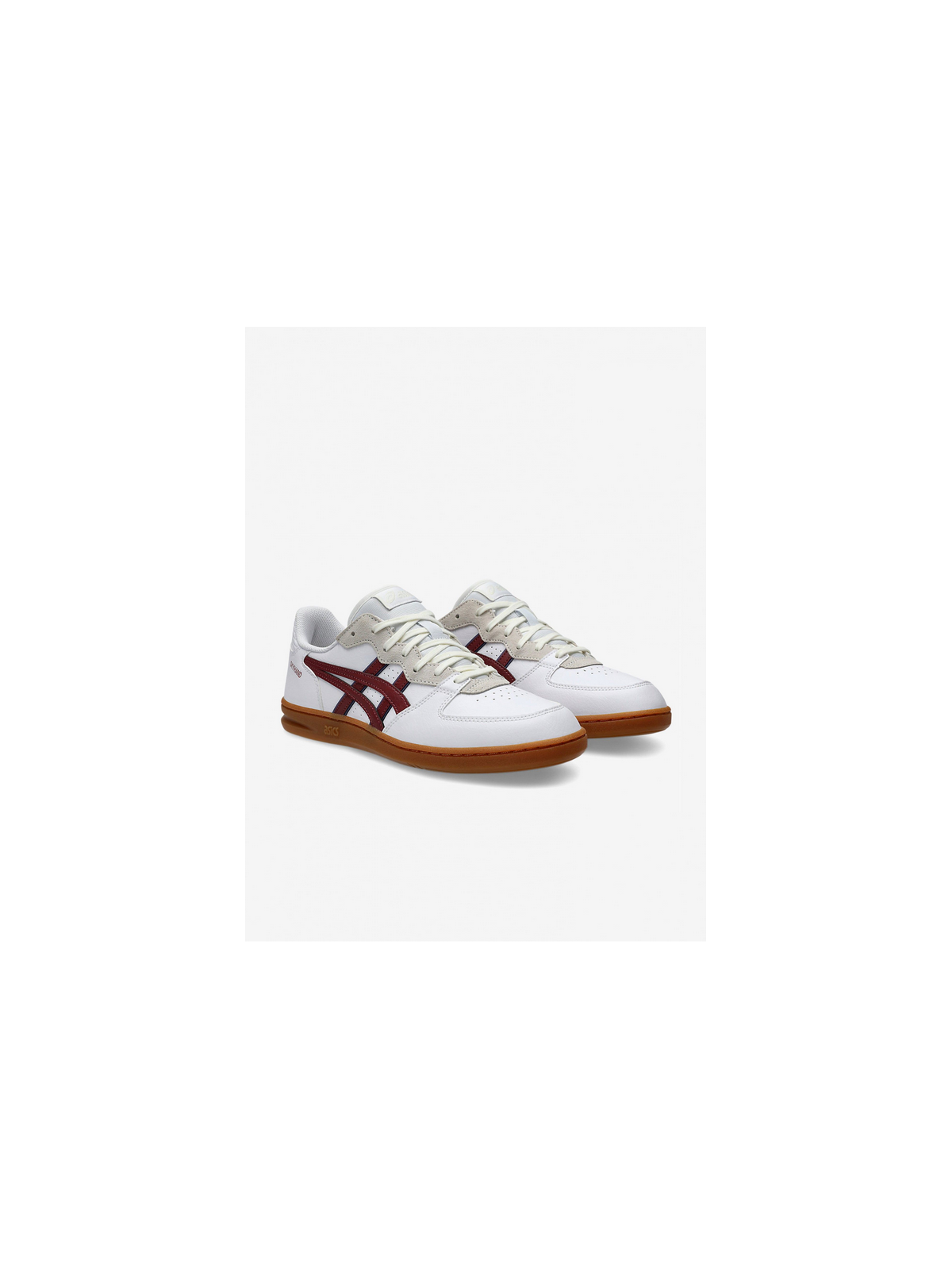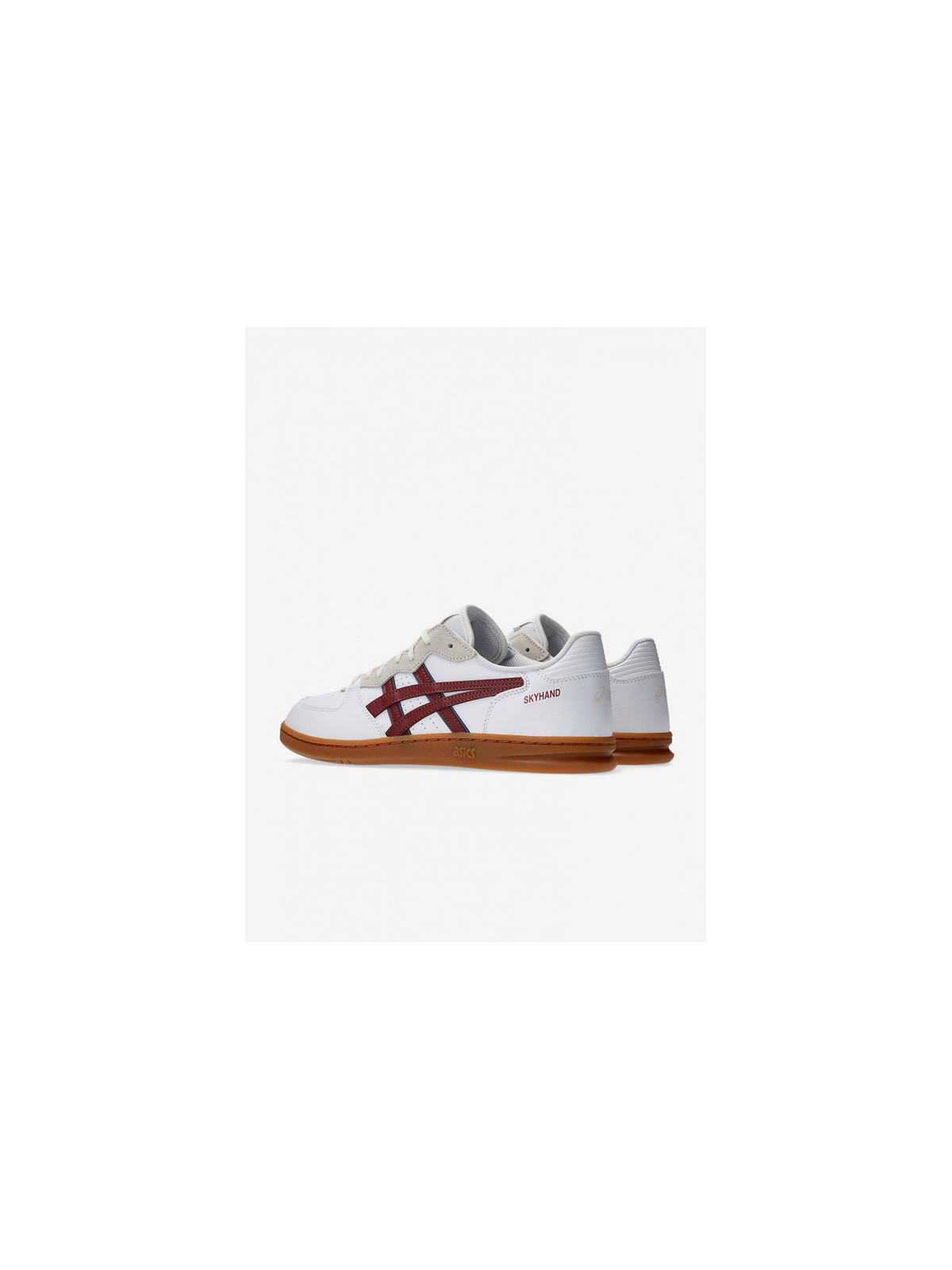 Zapatillas Asics Skyhand OG Blancas y Burdeos fabricadas con piel y materiales sintéticos y textiles con parte superior en una combinación de piel lisa y paneles de gamuza, amortiguación FLYTEFOAM PROPEL diseñada para absorber el impacto de forma cómoda, talón con refuerzo de EVA para mayor sujeción y suela de goma.