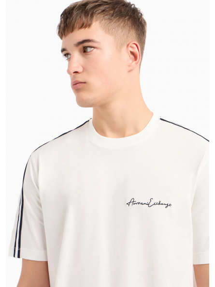 Camiseta Armani Exchange blanca bandas bordadas