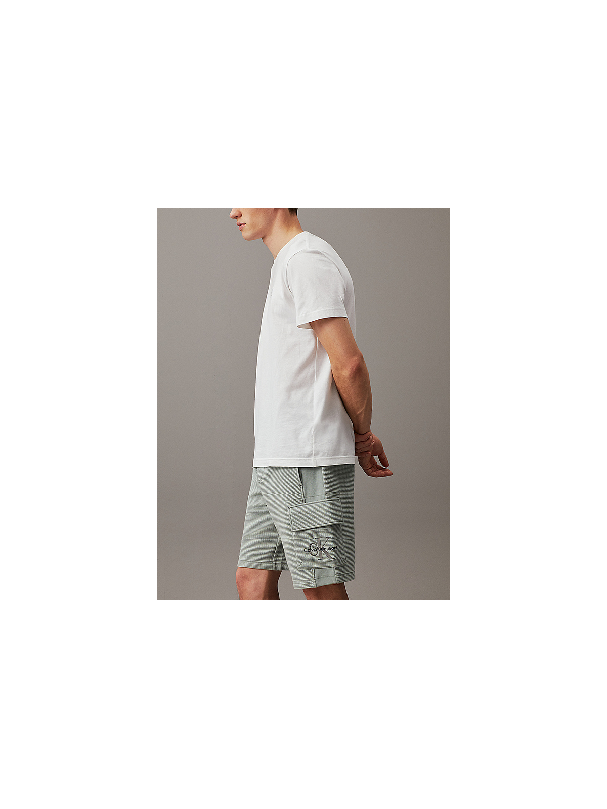- Monograma bordado de Calvin Klein en la pierna