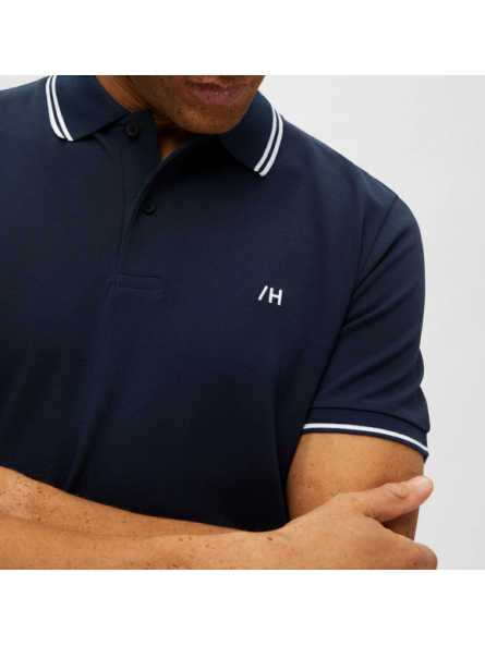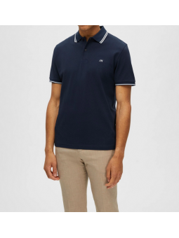 Polo selected diseño rayas azul marino