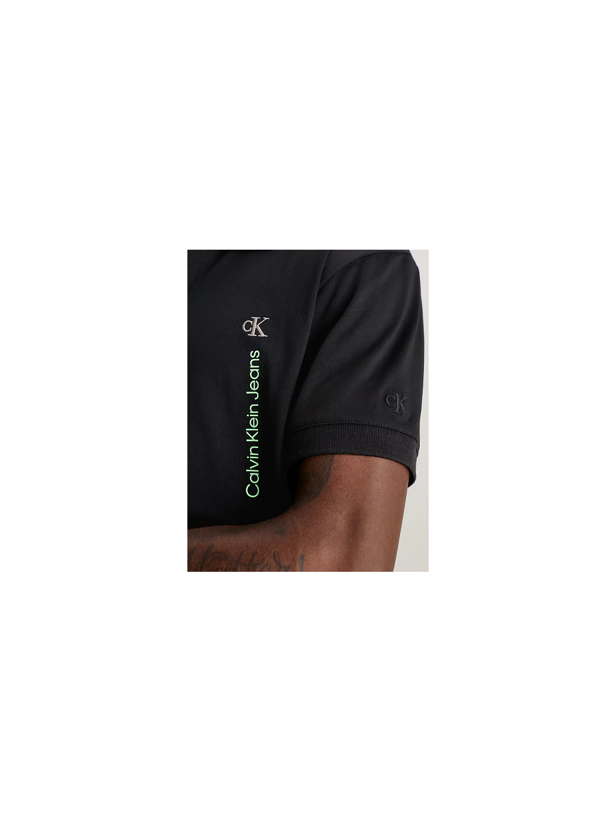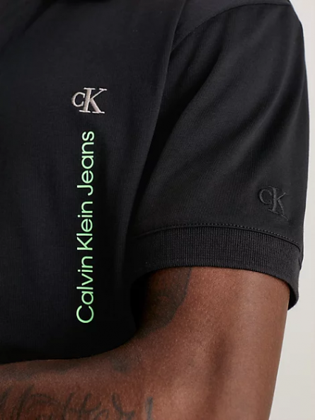 Polo Calvin Klein negro logo vertical flúor